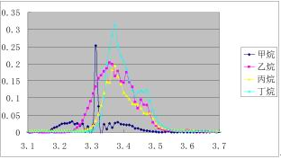 從上表可以看出,煤氣主要成分中CO、O2與背景氣N2的熱導(dǎo)系數(shù)相當(dāng),對H2的測量結(jié)果影響不大,但是CO2、CH4對H2測量影響明顯。通過理論分析及實驗表明,如果氣體成分中含有CO2,會使H2的測量讀數(shù)偏低;如果氣體成分中含有CH4,會使H2的測量讀數(shù)偏高。因此為了得到準(zhǔn)確的H2含量,應(yīng)對H2濃度進(jìn)行CO2、CH4的濃度校正。此外由于熱導(dǎo)傳感器的基本原理是通過對氣體流動帶走的熱量進(jìn)行換算,如果采用直接流通式的熱導(dǎo)檢測池,很難控制氣流,流量大小直接影響H2的讀數(shù),為了得到*的煤氣熱值,煤氣分析儀還必須實現(xiàn)CH4、CnHm無干擾測試。大多數(shù)紅外分析儀僅以CH4為測試對象,折合成碳?xì)浠衔锟偭坑嬎銦嶂怠C簹獬煞葜校貏e是焦?fàn)t煤氣,除甲烷外,還含有其他碳?xì)浠衔锏瘸煞帧8鶕?jù)紅外吸收原理,如圖1,乙烷等碳?xì)浠衔镌诩淄榈奶卣鞑ㄩL3.3um左右有明顯吸收干擾。當(dāng)煤氣中其他碳?xì)浠衔锖枯^大時,CH4的測試值會明顯偏大,導(dǎo)致熱值測試不準(zhǔn),其熱值測試值也無法保證精度。